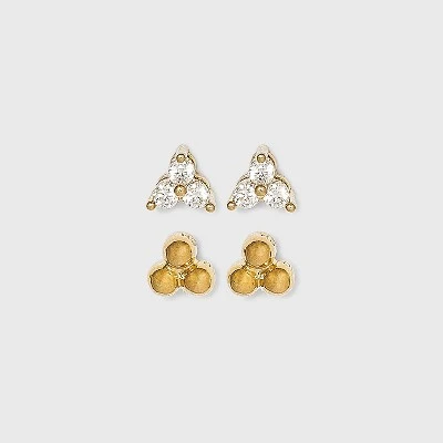 Give your favorite outfits a sparkly upgrade with the 14K Gold Plated Cubic Zirconia Ball Cluster Stud Earring Set from A New Dayâ„¢. This set comes with two pairs of earrings, both with a 14k gold-plated, nickel-free metal structure. The other pair includes a cubic zirconia stone detail that adds an extra shiny charm to your style. A post-clasp closure helps keep these earrings in place as you go about your day in style.