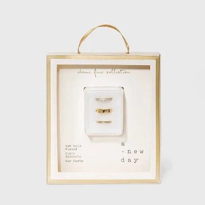 Add a little charming sparkle and shine to your outfits with the 14K Gold Plated Cubic Zirconia Ear Cuffs from A New Dayâ„¢. These charming ear cuffs are made out of 14K gold-plated, nickel-free metal and feature cubic zirconia stone details that add a lovely touch of sparkle to your looks. Plus, the open-closure style allows for easy on/off.