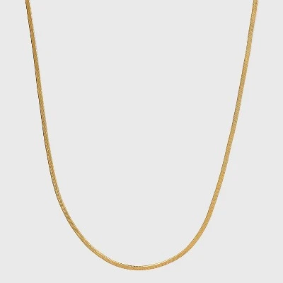 Add easy elegance to a wide variety of looks with this 14K Gold Plated Herringbone Chain Necklace from A New Day™. Featuring a simple, stylish flat herringbone construction, this gold-plated chain necklace comes in a 16-inch length complete with a 2-inch extender so you can choose a look that works with your neckline or other layered necklaces. A spring ring clasp closure provides a fit that stays put all day, and the sleek design is easy to pair with outfits from a basic V-neck to a little black dress.