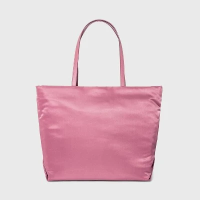 Carry your belongings for everyday use in style with the Soft Tote Handbag from A New Day™. Made of a lightweight fabric, this fashion bag is designed with a square silhouette, and it sports two faux-leather top handles for comfortable carrying over your shoulder. The soft handbag is fully lined and features a spacious main compartment, a padded laptop pocket and an interior pocket secured with zippered closures to keep your essentials from spilling. The zippered side pockets lend additional storage space with easy access. With the double top handles, the lightweight bag is great for everyday use, traveling or daily commute.