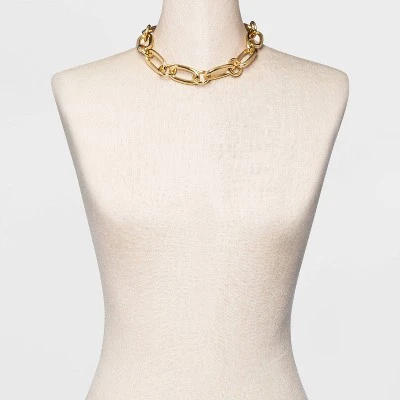 Expand the options in your jewelry collection by adding this Chunky Oval Open Chain Link Necklace from A New Dayâ„¢. Its choker length and shiny, gold-finished chain links make it the ideal piece for highlighting tops with high or low necklines. The chunky, open chains give it a chic, feminine look sure to draw attention in whatever you wear it with. It has a lobster clasp with an adjustable length to help you find the fit that best suits you.