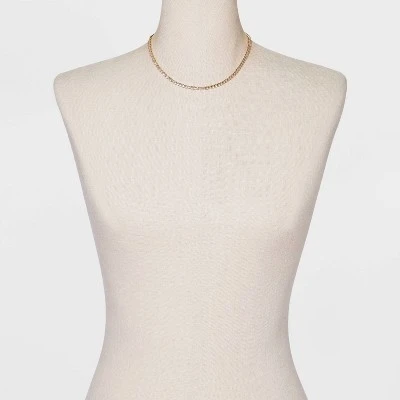 Add some sweet sparkle to your everyday looks with this Crystal Rhinestone Chain Necklace from A New Dayâ„¢. Featuring a simple, chain-link style design in a shiny gold finish, this princess-length rhinestone necklace complements many different necklines and color palettes. The entire length of the chain is studded with sparkly crystal rhinestones, making for a glam look that instantly elevates a simple plain tee or a great go-to dress.