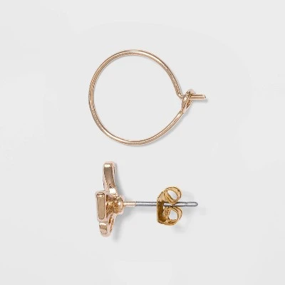 Bring on the sparkle with the Eight-Pair Cubic Zirconia Earring Set from A New Dayâ„¢. This set includes several pairs of studs, from front-facing hoops to butterflies, as well as two pairs of hoop earrings with integrated loop backs, all in a mix of gold- and silver-tone finishes. Wear pairs separately for a simple, minimalist jewelry look, or easily coordinate two or more pairs together for multiple ear lobe piercings.
