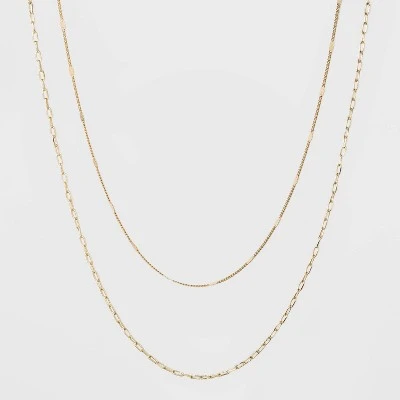 You’ll love the simple elegance of this Gold-Tone Station Chain Necklace Set from A New Dayâ„¢. This double chain necklace set is comprised of one delicate station chain in a shorter length alongside a longer paper-clip chain that looks great on its own or with the addition of some of your favorite charms. Each chain is rendered in a high-polish yellow gold-tone finish for a warm glow, and the slightly different lengths complement each other perfectly when worn together in a layered look. Each necklace closes with a lobster clasp for secure wear, so you can style them with confidence no matter the occasion.