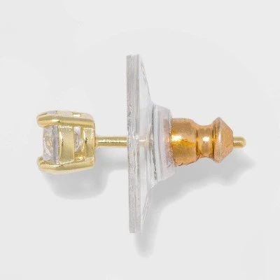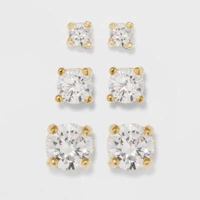 Bring sparkle and shine to your casual and dressed-up looks with the Gold Over Sterling Silver Cubic Zirconia Stud Fine Jewelry Earrings from A New Day™. This three-pair earring set includes round cubic zirconia studs in three different sizes, giving you the perfect accent to your work-ready blouse and trousers or your glam cocktail dress and pumps. The simple post and barrel closure lets you create the right fit every time for comfortable all-day wear.