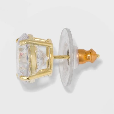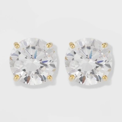 Whether you make them a regular part of your office wardrobe or wear them to a special event, these Gold/Clear Gold Over Sterling Silver Round Cubic Zirconia Stud Fine Jewelry Earrings from A New Dayâ„¢ will make every outfit glisten with glamour. This pair of fine jewelry earrings, showcasing a round-cut clear cubic zirconia stone held in a classic basket setting, is both simple and elegant. Enhanced with a highly polished finish and a touch of gold, these beautiful sterling silver earrings add shine to your everyday looks. Simply pair these earrings with a variety of formal and casual looks for a subtle pop of style to your outfit.