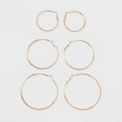 Show off your angles with this Hoop Earring Set from A New Day™. Simple gold-tone hoops get a twist from squared wire, adding a subtle twist to a classic design. Pair these easy-to-wear omega-back hoop earrings with your go-to casual duds or something more formal — they can do both and everything in between.