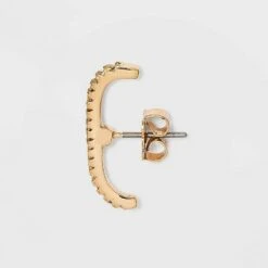 Keep your jewelry collection up-to-date by adding these Huggie Drop Earrings from A New Day™. Their gold finish is lined with gem studs for a chic look you’ll love wearing with a variety of outfits day after day. Their color also makes them easy to match with your other jewelry pieces and your favorite accessories. They have a post-back closure for easy on-and-off wear, and their nickel-free construction makes them suitable for most skin types.