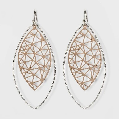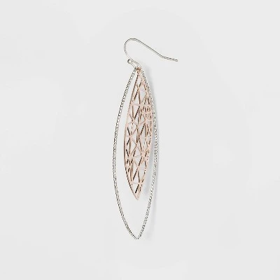 Whether you’re spending a day in the sun or headed to work, the Multi-Plated Filigree Drop Earrings from A New Dayâ„¢ will add a sleek and stylish finish to your look. These fish-hook drop earrings sport marquis-shaped leaflike designs embellished with cutouts in a rose gold tone, and they’re set within a twisted, leaf-shaped silver-tone frame for added movement. They’ll pair easily with just about any outfit while adding a touch of glitz to your style.