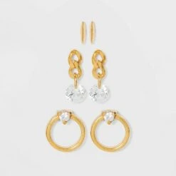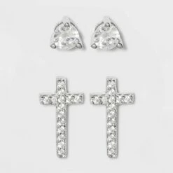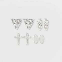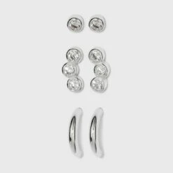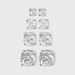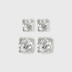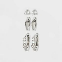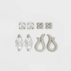 Sterling Silver Cubic Zirconia Multi Shape Stud Earring Set 3pc – A New Day™ Metallic Silver