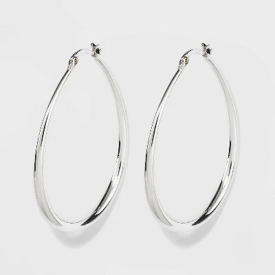 Bring a timeless addition to your jewelry collection with these Silver-Plated Graduated Oval Hoop Earrings from A New Day™. Featuring an oval-shaped design in a shiny silver finish, these earrings present a stunning take on a timeless style and their versatile silver finish adds the perfect touch to a variety of different looks. Pair them with your favorite jeans and tee combo to jazz up your casual ensembles, or wear them with an evening outfit for a dressier take.