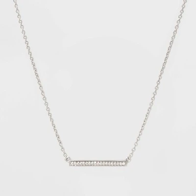 Add charming shine to your everyday looks with the Sterling Silver Pave Cubic Zirconia Bar Necklace from A New Dayâ„¢. This sterling silver bar necklace features a stationary charm at the center of the chain, sparkling with clear cubic zirconia stones for a pop of shine. Pair with a V-neck shift dress and heels for a day at the office, or add to scoop-neck tee and wide-leg jeans to meet your friends for coffee.