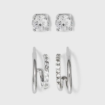 The Sterling Silver Cubic Zirconia Double Hoop Earring Set from A New Dayâ„¢ includes two pairs of sterling silver earrings in classic styles that have plenty of shine to go around thanks to their glittering gems. A pair of round-cut CZs are set in simple prong settings that enhance their shimmer by letting light pass through the facets, while the pair of double hoop earrings looks like two earrings in one easy-to-wear pair. Wear each separately for a minimalist vibe that’s perfect for everyday styles, or sport them together when you want to amp up the glam.