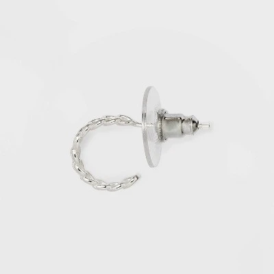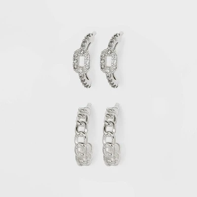 Give your jewelry collection an elegant, charming update with this 2-Piece Sterling Silver Cubic Zirconia Hoop and Frozen Chain Hoop Earring Set from A New Dayâ„¢. This set features two pairs of silver-plated hoop earrings, each in a unique design. One pair is studded with all-around cubic zirconia crystals for a gorgeous, sparkly look that flashes in the light, with a rectangular cut-out providing added dynamic flair. The second pair is made up of frozen chain links for a simple but fashionable look. Both earrings are perfect for adding a finishing touch to your weekend outfits, and the nickel-free construction makes them suitable for most skin types. Plus, post-back closures make them incredibly easy to put on and take off.