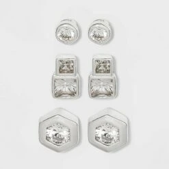 - 3pc earring set includes varying shapes and designs
