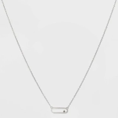 Simply accessorize your outfits with this Sterling Silver Cubic Zirconia Open Link Necklace from A New Dayâ„¢. Designed with a simple linked chain for a sleek look, this sterling silver necklace is accented with a rectangle open bar with curved sides and a cubic zirconia stone for a glam look. Nickel-free, this princess-length necklace makes a great layering piece with both your casual or formal outfits.