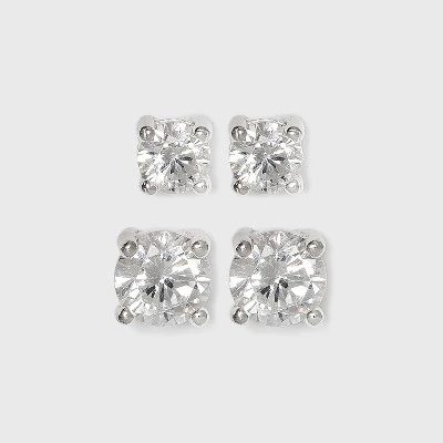 Complete any of your ensembles with a dash of sparkle with this Sterling Silver Duo Round Cubic Zirconia Stud Earring Set 2pc – A New Day™ Clear. Constructed from sterling silver, this set of cubic zirconia studs come in two different sizes — giving you several options to choose from. Showcasing round-cut, clear cubic zirconia stones held secure in a four-prong setting, these brilliant earrings are both simple and elegant to wear.