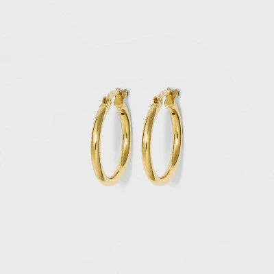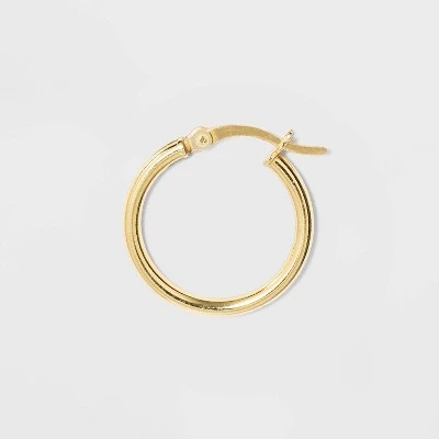 Classic styles never go out of fashion, making the Sterling Silver Round Thin Hoop Earrings from A New Dayâ„¢ an excellent pick. These delicate sterling hoops shine in a high-polish yellow gold-tone finish that pairs effortlessly with your other gold pieces, and their simple style means they’ll never look out of place no matter what you’re wearing. These plated sterling silver hoops are perfect with everything from boyfriend jeans to refined workwear thanks to their timeless silhouette, and their click-down closures make them easy to wear on any occasion, any day of the week.