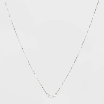 Add sparkle to your neckline with this Silver Sterling Cubic Zirconia Curved Bar Necklace from A New Dayâ„¢. This dainty chain-style necklace makes a great jewelry piece for accessorizing. Neatly set with cubic zirconia studs on a curved-shaped base, it adds beauty and shine to your attire. Complete with a traditional spring ring clasp for secure fastening, it’s easy and comfortable for all-day wear. Pair with coordinating drop earrings and a range of work blouses, casual tops or dresses to make accessorizing simple and stylish.