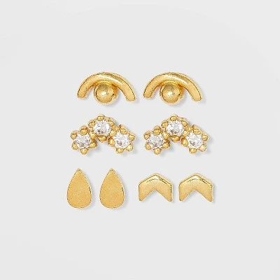 Flaunt your chic style by complementing your outfits with these 4-Piece Sterling Silver with Cubic Zirconia Multi Shape Stud Earring Set from A New Day™. This four-piece earring set includes gold-tone earrings in varying shapes and designs to accessorize your ensembles in chic style. Pair these stud earrings with your fave dresses or jeans and tees for a fashionable look.