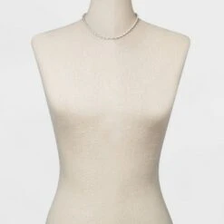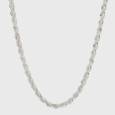 Add elegant shine to your everyday or evening looks with this Silver Twisted Chain Short Necklace from A New Dayâ„¢. This short curb chain necklace brings statement style to your jewelry accessories. It features a twisted rope design in a shiny silver finish for a braided textured effect that goes well with any outfit. This fashionable necklace comes with a classic lobster clasp closure for secure and easy wear. You can wear this necklace on its own or paired with a favorite pendant or charm for a personalized finishing touch.