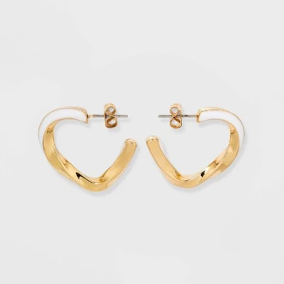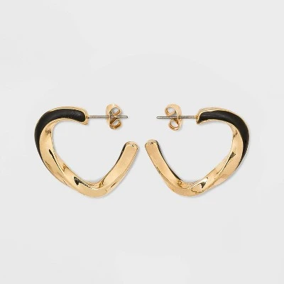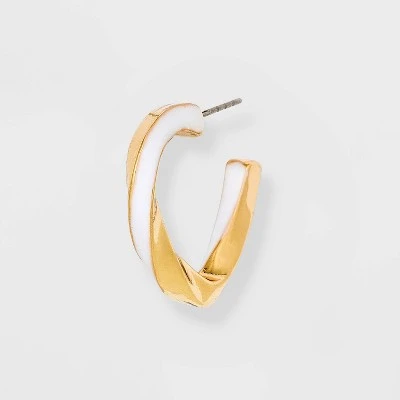 Add an edgy finish to any of your look with these Twisted Hoop Earrings from A New Day™. These shiny gold-tone hoop earrings offer easy styling with any outfit. Featuring a modern twisted design with a contrasting finish, they lend on-trend texture and style. Set on post hardware with a butterfly back for secure wear, these lightweight hoop earrings are made from nickel-free metal to suit most skin types. Wear them with black dresses and heels, or with everyday tee and jeans combo to add a boost of fashion.