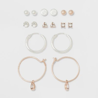 You can choose between hoops and studs with the Multi Earring Set from A New Day™. With styles ranging from faux-pearl to cubic zirconia stones to hoops and more, you’ll have something new to wear for every day of the week. The simple everyday earrings will look great as part of your jewelry collection and bring a fun twist to your go-to options.