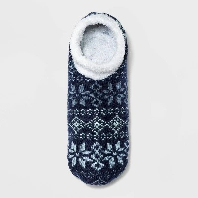 Keep your feet warm and comfortable with the Women’s Fair Isle Snowflake Double Lined Cozy Booties with Grippers – A New Dayâ„¢ Blue 4-10. These ankle socks are perfect to couple with boots or sneakers. The graphic print on the body add a splash of fun to your outfit, to help you create your own unique look.