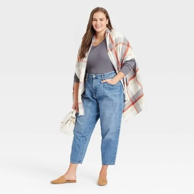 Layer up a simple jersey top and slim-fit jeans for an effortlessly cozy-chic look with the Cream Plaid Wrap Jacket from A New Dayâ„¢. This cape-style wrap jacket made from lightweight fabric makes a fashionable and comfortable layering staple. It features a gray and orange plaid pattern to give it a timeless look, and a casual cut for relaxed appeal. The open-front style allows for easy layering and wear. Drape it loosely over the body or wrap around the neck and shoulders as a perfect transitional piece.