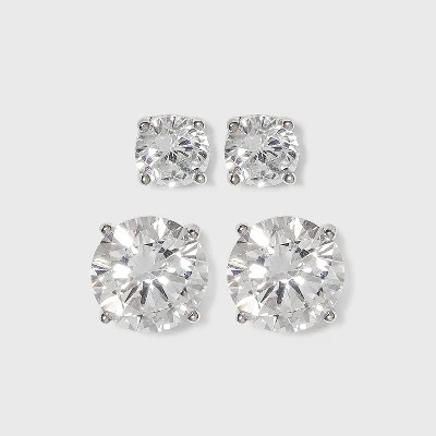 Complete your look, whether you’re running to yoga or heading to a formal party, with this Sterling Silver Stud Earrings Set of Two. These sterling silver studs come in 5mm or 8mm cubic zirconia stones, so you can choose the perfect amount of sparkle to finish off your outfit. If you’re not satisfied with any Target Owned Brand item, return it within one year with a receipt for an exchange or a refund.