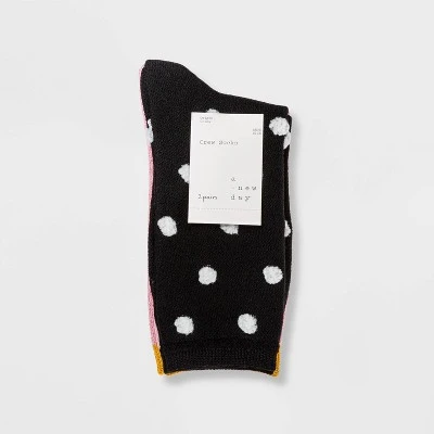 Add a pop of color to your ensemble with the Women’s 2pk Polka Dot and Soft Shimmer Crew Socks from A New Day 4-10. Featuring ribbed cuffs for a secure fit these crew-cut socks sits at the calf. With option of two colors and designs, mix and match these pair of two socks with your favorite outfit to spruce up your look.