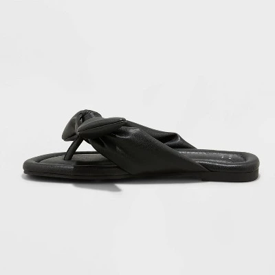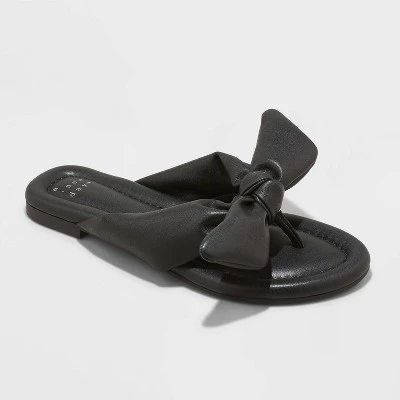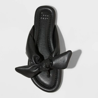 Add chic style to your footwear collection with these Adley Bow Flip Flop Sandals from A New Day™. The open-toe slide sandals are designed with a thong strap with bow detailing for a secure fit you can feel confident in. The slip-on style make them super comfortable and easy to wear, while the simple design pairs perfectly with everything from shorts to sundresses, making them a go-to pick in your warm-weather closet.