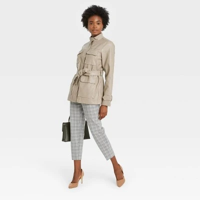 You’ll look and feel extra chic when you top your outfits for work or play with this Anorak Jacket from A New Day™. In a pretty faux leather finish with lots of fashionable details, this below-hip anorak is a perfect choice for pairing with everything from dress pants to skinny jeans to shift dresses. Four flap pockets on the front and a hidden full-length front zipper make for an attractive amount of texture and detail, while built-in belt loops with a waist-tie belt let you cinch the middle to create a stunning silhouette.