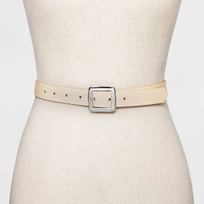 Bring an extra touch of style to your everyday outfits with this Chunky Center Bar Belt from A New Day™. This classic belt in a solid finish makes a go-to styling piece in your accessories collection. It features a square center bar in a silver finish for a polished look, and the multiple hole adjustments help you get the right fit every time. Whether paired with formal trousers or wrapped around the waistline of a dress, this center bar belt lends on-trend flair to any outfit.