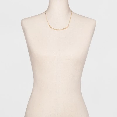 Add a subtle shining accessory to your look with this Fashion Chain Necklace from A New Day™. A simple snake chain is finished off with a sleek, twisting bar that gently curves at the bottom of the necklace. Pair this necklace with a variety of tops, dresses and necklines for a stunning look that can be dressed up or down.