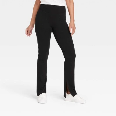 Add variety to your wardrobe staples with the Women’s High Waisted Split Hem Flare Leggings with Ribbed Waistband from A New Day. These black leggings will pair well with any casual look, day or night, while the high-rise fit provides a smooth, flattering look. Pair with sweaters, sweatshirts or tees to create a look that shows off your radiant sense of fashion.