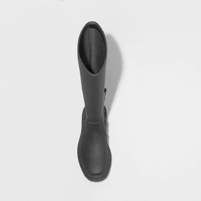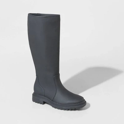 Take your footwear fashion to the next level with these Judy Lug-Soled Tall Boots from A New Day™. These tall boots feature a classic round, closed-toe shape and they’re designed with a 1.5-inch block heel to add a little lift to your looks. Featuring a faux-leather upper for timeless style, these medium-width boots also feature rubber soles for comfy wear. Plus, they’re designed with a half-length zipper on one side for easier slip-on wear that also stays firmly in place throughout your day. Pair them with skinny jeans and a fleece jacket, or with a midi skirt or dress to take on your day with comfortable flair.