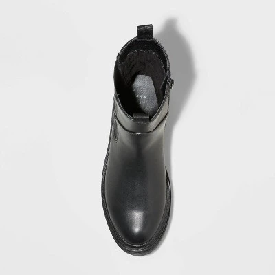 Take on your day with comfort and style in these Laura Gore Chelsea Boots from A New Day™. Featuring a classic Chelsea boot design with an elastic panel at each side, these medium-width boots are designed with a back zipper and pull-on tabs for easy on and off, while the soft foam cushioning offers you comfy wear. In a solid faux-leather finish with a flocked outsole for timeless appeal and featuring 1.75-inch block heels to add height, you can easily slip into them to finish off outfits from a crewneck tee and skinny jeans to a knit sweater, cozy jacket and a chunky beanie to rock a cool-weather look.