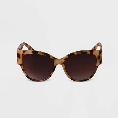 Give your everyday accessories collection a chic update with these Plastic Cat Eye Sunglasses from A New Day™. These large sunglasses will elevate your look with the large animal-print frame, and the stylish butterfly cat’s eye silhouette looks great with casual and dressier ensembles alike. It feature a hinged temple design and maximum UV protection, making them a smart choice for everyday use. From running errands to exploring the outdoors, these large sunglasses are sure to become your go-to choice for any occasion.