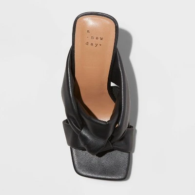 Add the perfect finishing touch to your warm-weather closet with these Randi Slide Heels from A New Day™. The slip-on slide sandals feature a knotted broad strap to help keep them in place on your feet, while the 3.5-inch block heels provide some extra height that’s easy to stand and walk on as you move through your day. Best of all, these heels feature a slip-on design for quick and easy wear. Pair them with anything from jeans and a T-shirt to a casual dress to complete your warm-weather ensemble.