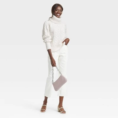 Give your cozywear closet a perfect finishing touch with this Mock Turtleneck Cable Knit Pullover Sweater from A New Day™. This long-sleeve sweater is made from lightweight material with chunky cable-knit construction to offer you cozy, comfy wear, while the ribbed cuffs and hem lends polished flair. Plus, this long-sleeve sweater is designed with a mock turtleneck for extra warmth. Pair with everything from jeans and skirts to straight-fit pants to keep your look classically chic.