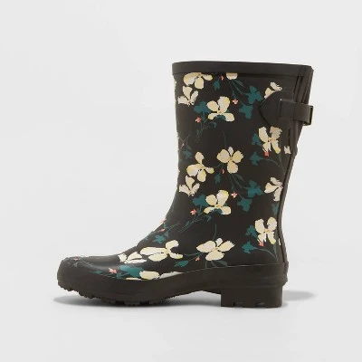 Stomp through the rainy weather in style wearing the Vicki Rubber Buckle Rain Boots from A New Day™. Featuring a closed-toe design and made from a waterproof material, these women’s rain boots prevent from water from getting inside, while the buckle at the back of the boot shaft offers you an adjustable fit. Designed with a soft fabric liner to keep your feet comfy, these mid-calf rain boots feature a flocked outsole for better grip. Slip them on with high-waisted leggings or jeans and a cozy top or a casual tee to get through any weather in style.